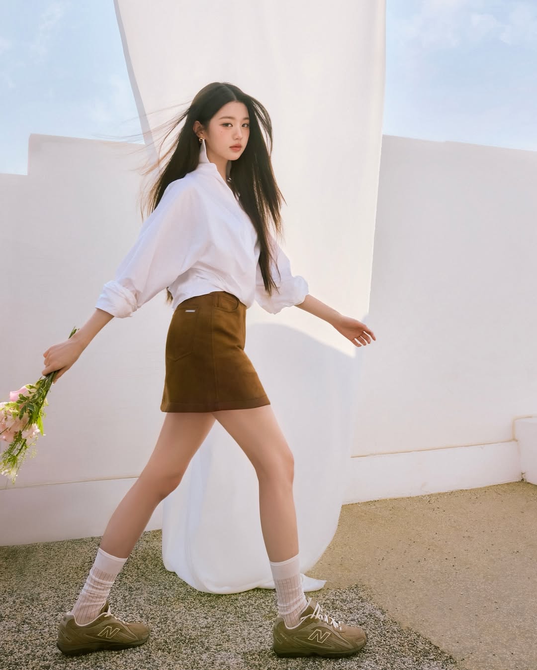 - 소품: 한 손에 든 꽃다발이 로맨틱하고 서정적인 분위기를 더해주며, 화보의 컨셉을 더욱 풍성하게 만들어주었습니다. 💐